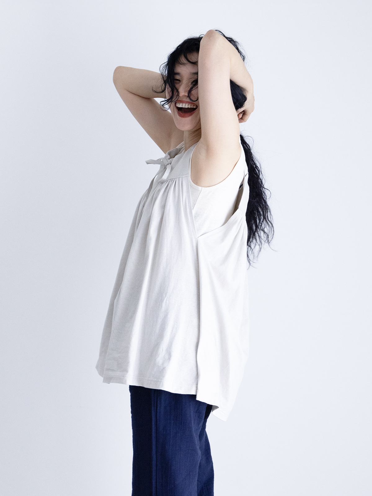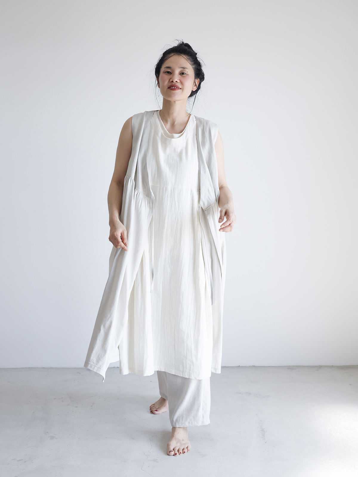 身体を優しく包み込むような感触、すっぽりと覆われて守られているような感覚を大事にしながら作られている衣類は、自然と日常に取り入れたくなるものばかりです。