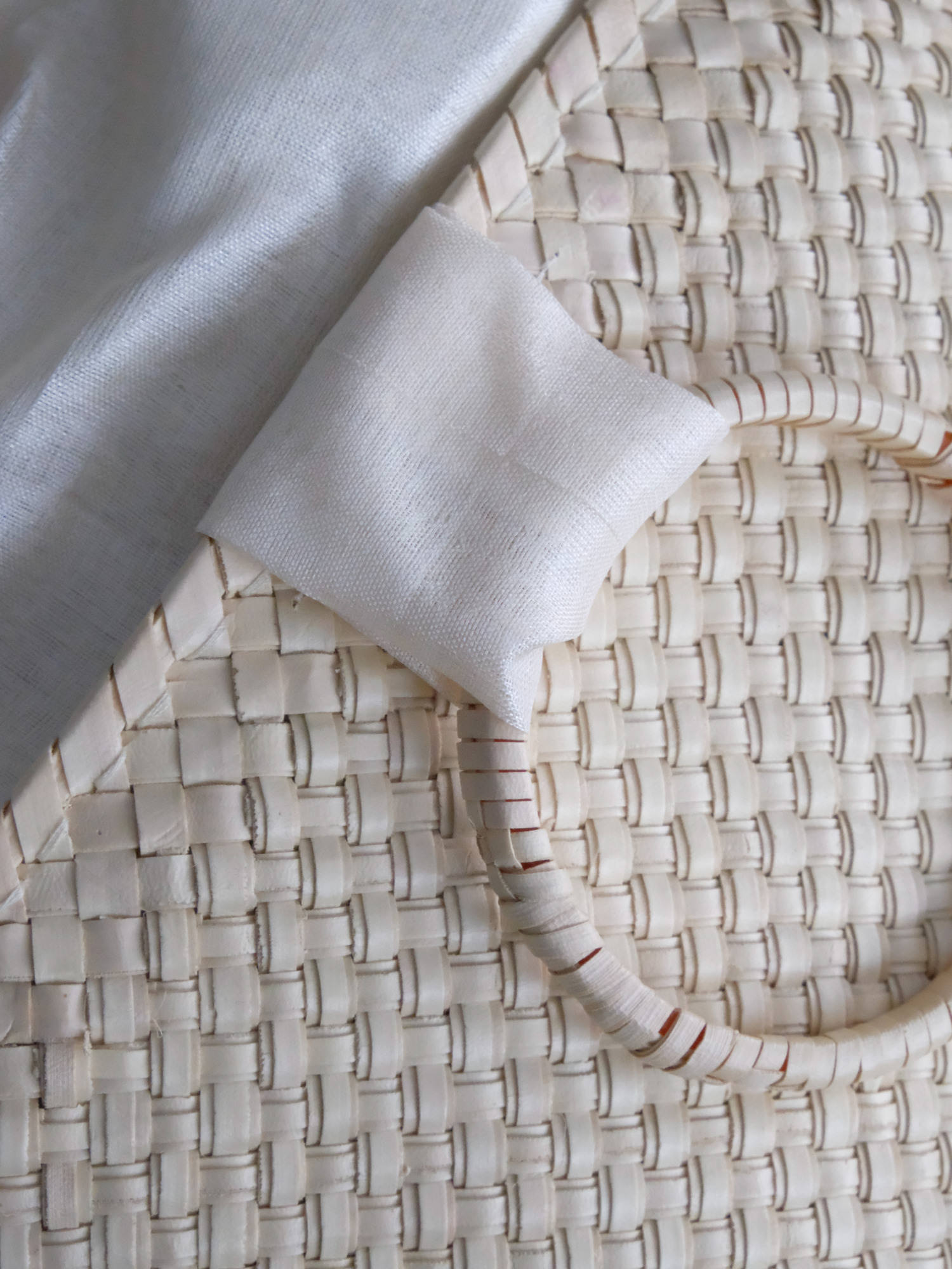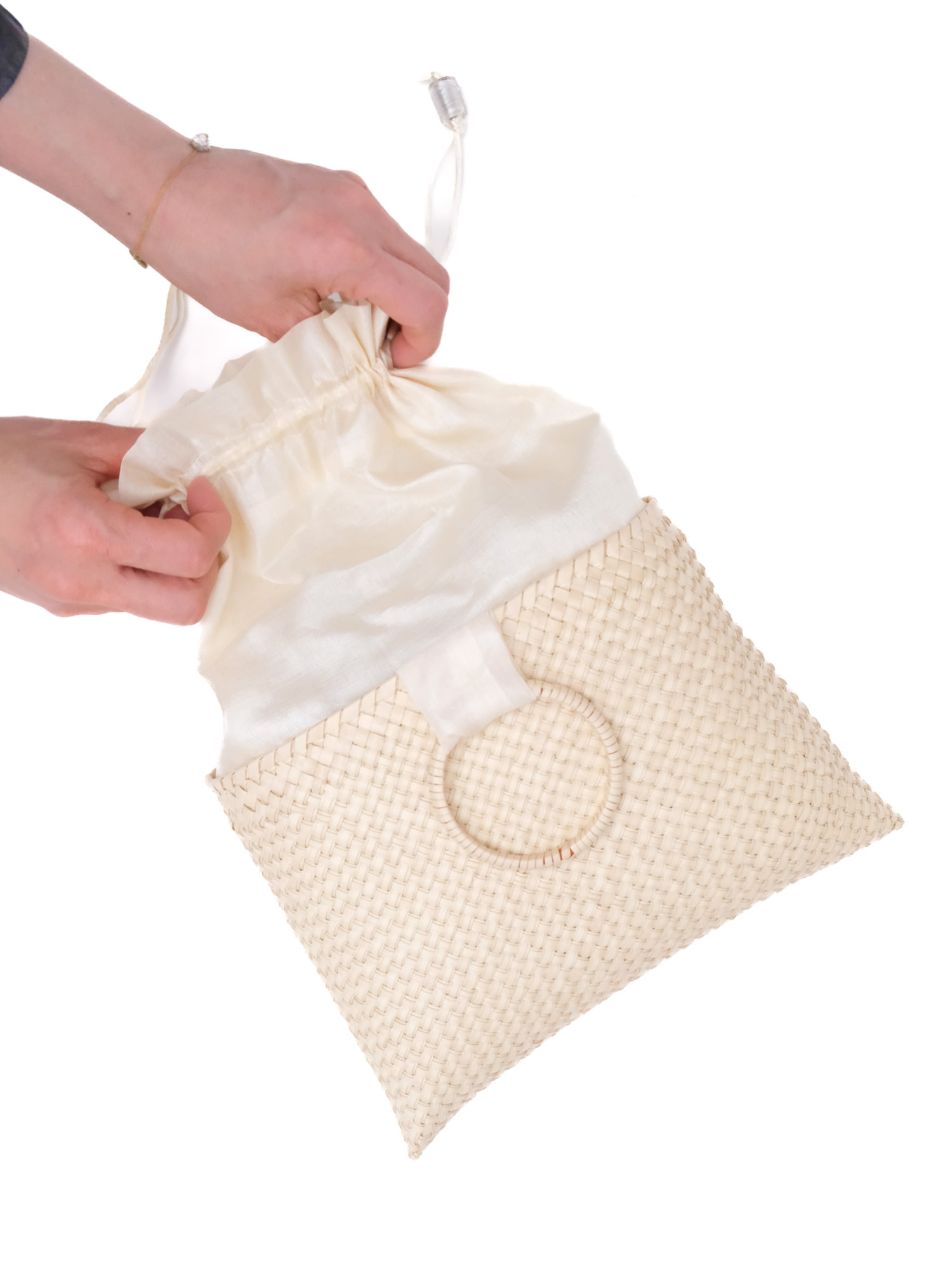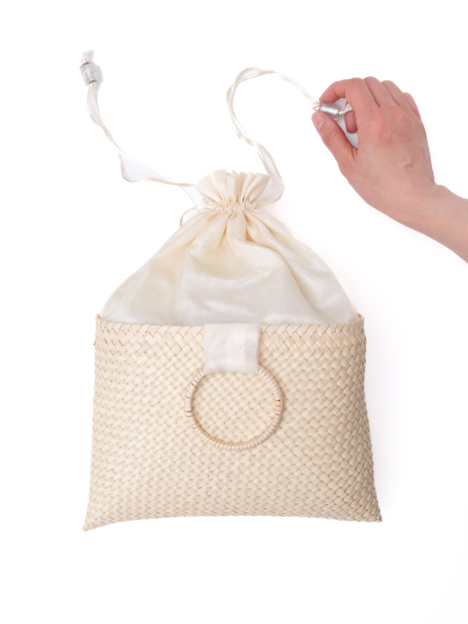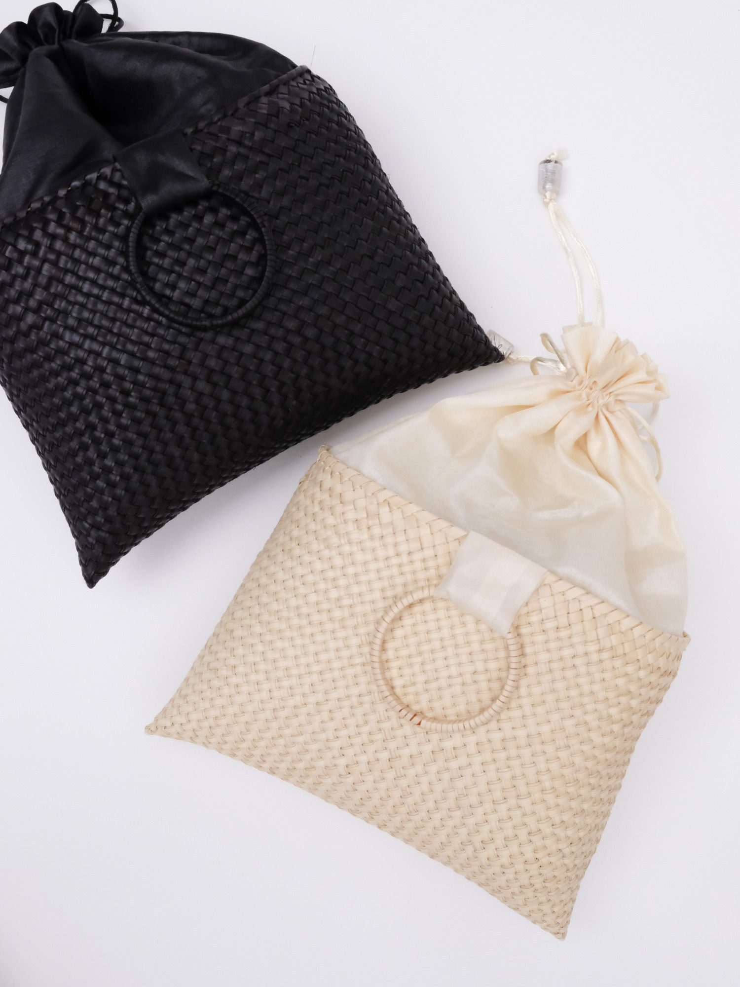 パームの葉とシルクを組み合わせた、イブニングバック。