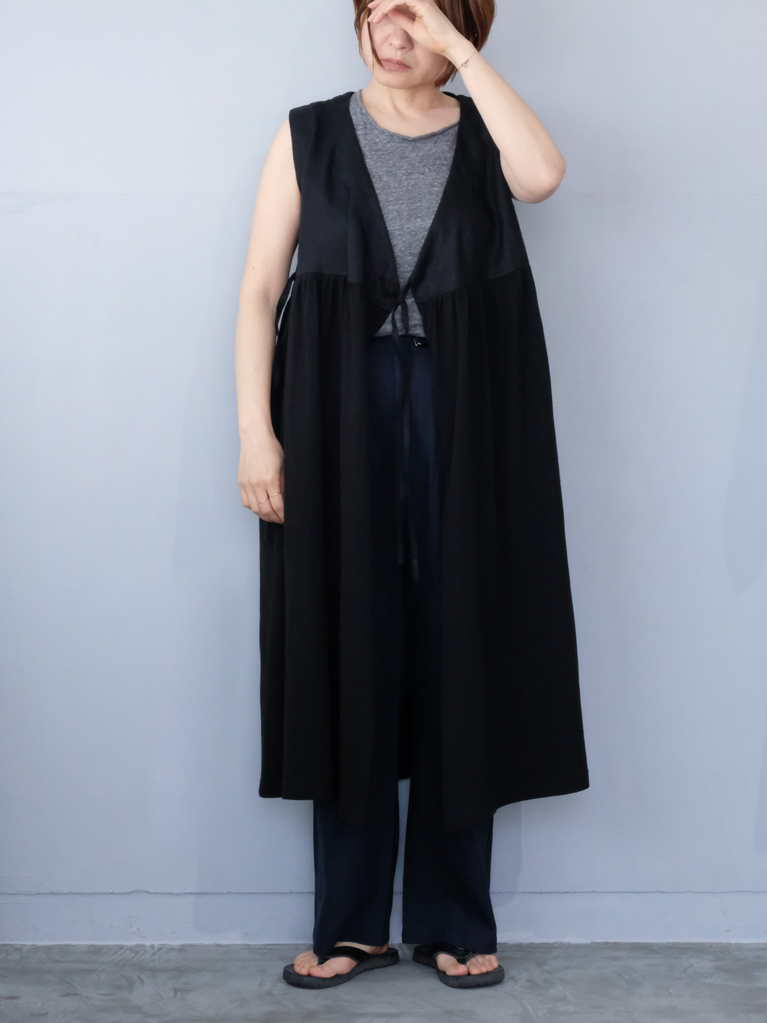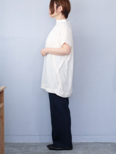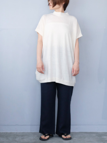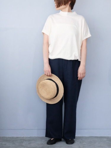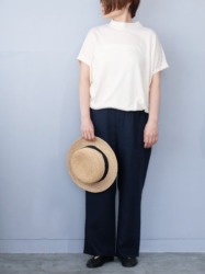 40番手のフレンチリネン糸に再生繊維をブレンドした、ドレープ性のあるリネン複合素材でさらっと軽い生地で、夏の暑い日にも活躍してくれます。